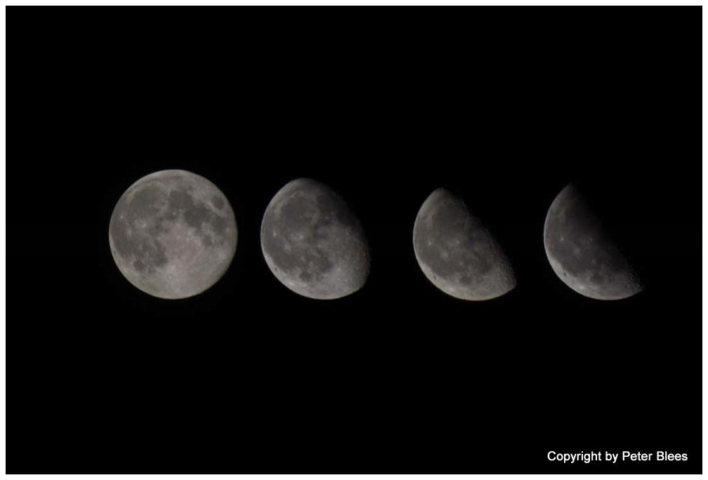 Vier Mondphasen fotografiert und bearbeitet von Peter Blees.
