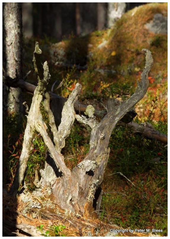 Alte vermodernde Bäume bilden Fantasieskulpturen, man muss sie nur sehen.