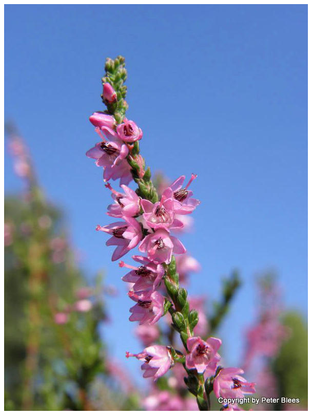 So sieht der Zweig einer Heidepflanze aus, wenn man ihn genauer betrachtet.