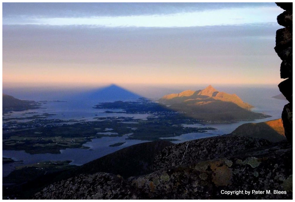 Der Berg wirft einen markanten Schatten in die Landschaft.