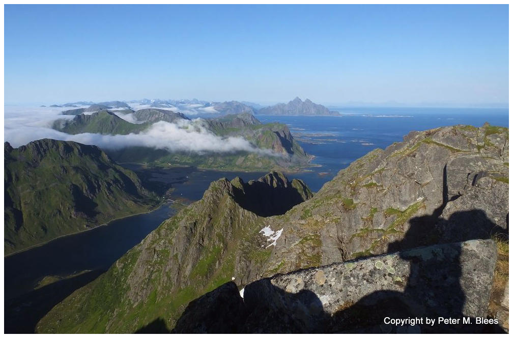 Der Blick vom Justadtind, 738 m hoch, in westliche Richtung