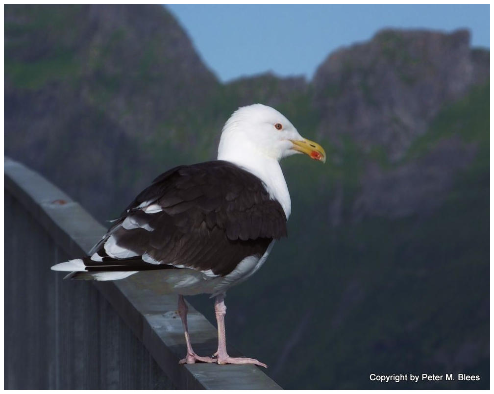 Heringsmöwe auf einem Brückengeländer