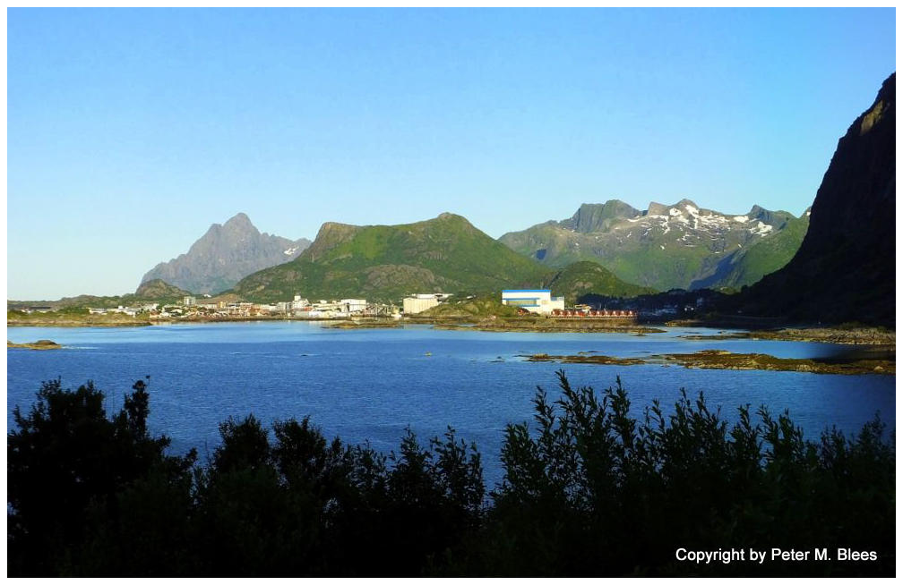 Blick von der E 10 nach Westen auf die Stadt Svolvær.