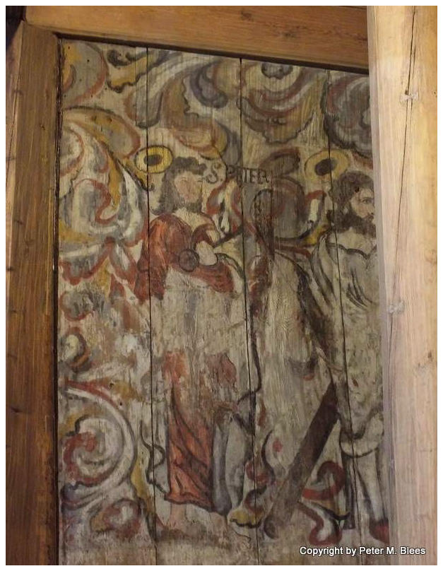 Die Seitenwände der Kirche sind mit zum Teil verblassten Figuren bemalt.