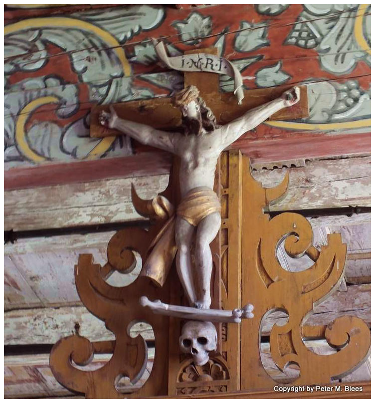 Ein ungewöhnliches Kruzifix hängt in der Stabkirche von Kvernes.