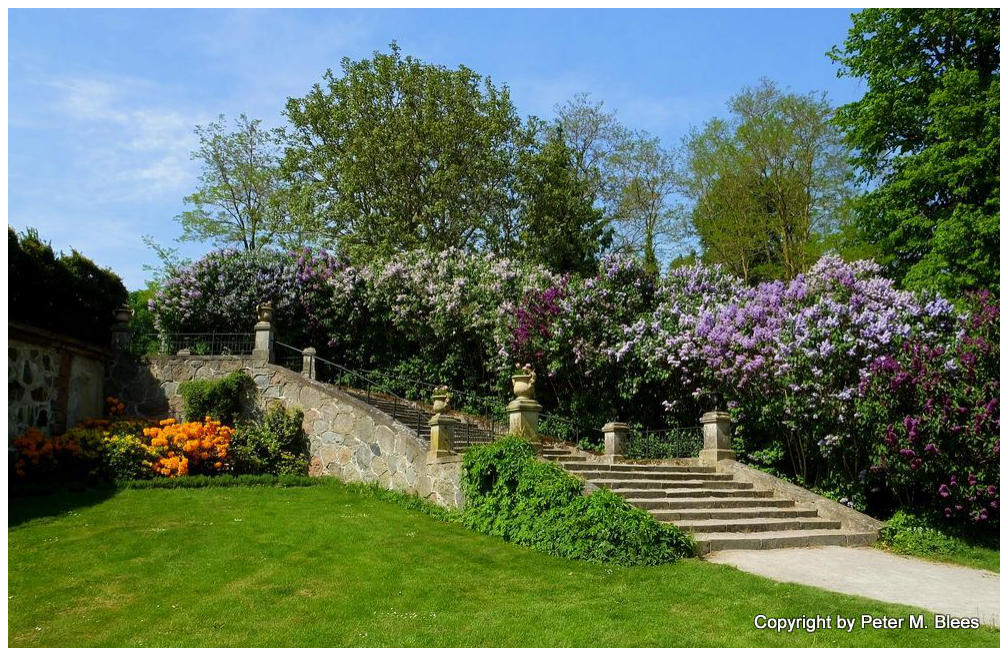 Diese breite von Flieder gesäumte Treppe führt in den Park des Övrekloster