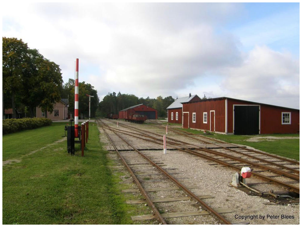 Hinten links steht das Bahnhofsgebäude und hinten in der Bildmitte sieht man