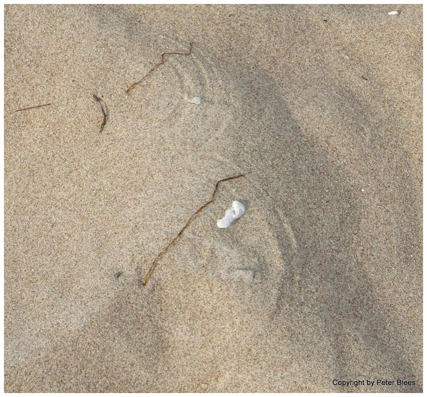 Der Wind malt mit trockenen Grashalmen Bögen in den feinen Sand der