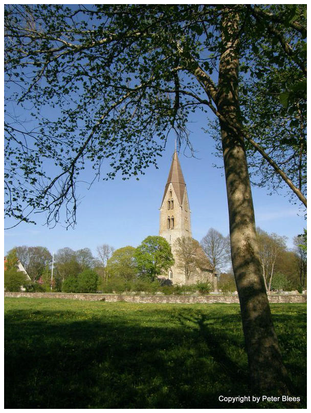 Die mächtige Kirche von Öja von der Baumwiese aus fotografiert.