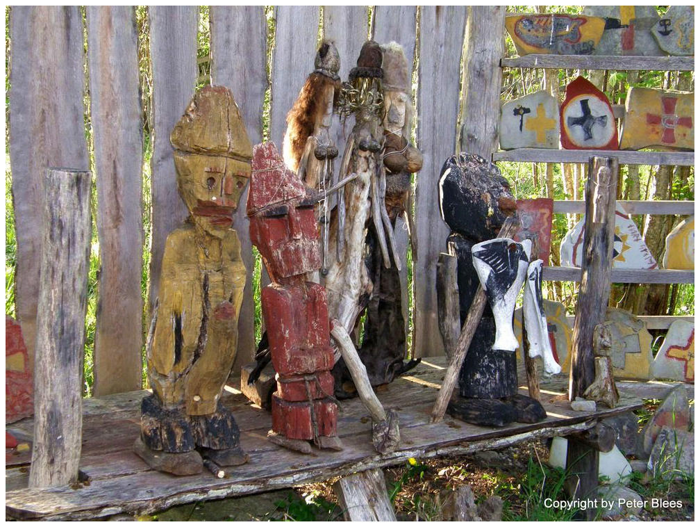 Von den Schülern in Stavgard gefertigte Objekte aus Holz, Knochen und Stein.