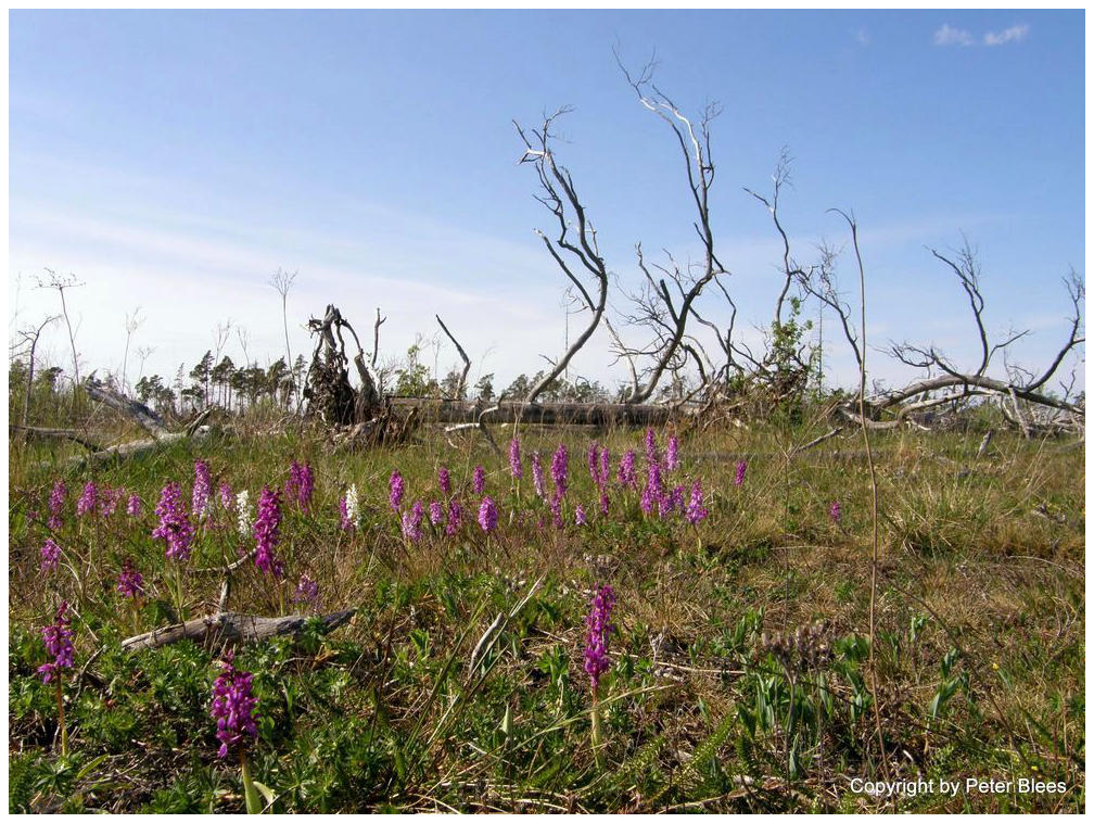 Orchideen, Kräuter und Gräser haben das verwüstete Land wieder besiedelt.