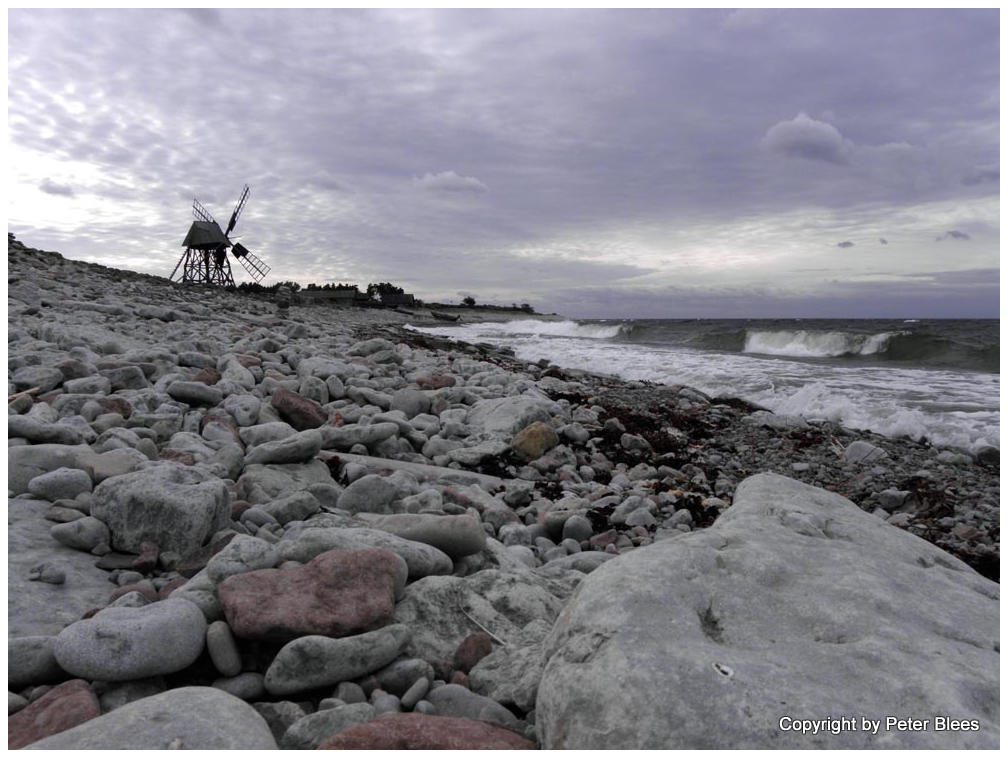 Das Kalkgestein am Strand der Jordhamnbucht ist rund geschliffen.