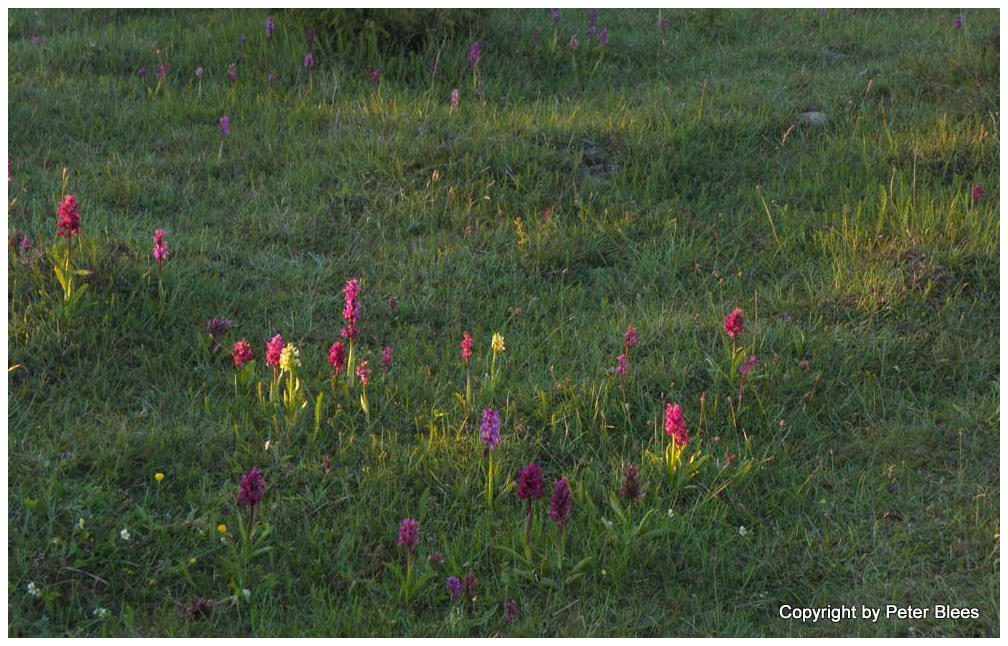 Im morgenlichen Streiflicht heben sich die Orchideen farblich besonders gut von