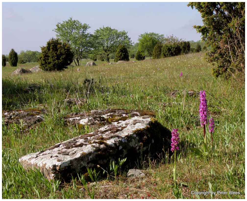 Typische Konstellation im Alvar, Orchideen, Kräuter und Kalksteinblöcke und -