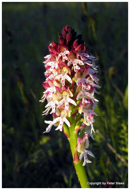 Diese Orchidee heißt Brand-Knabenkraut. Die Blüten öffnen sich nach und nach