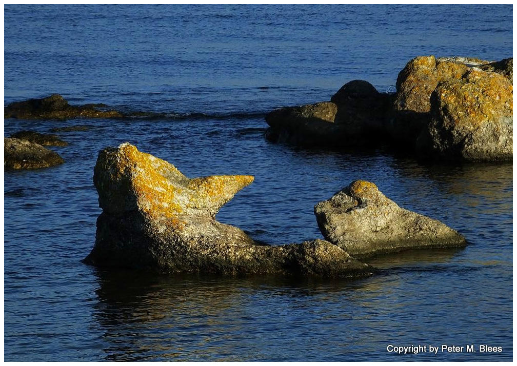 Die Abendsonne lässt die gelben Flechten kräftig aufleuchten.