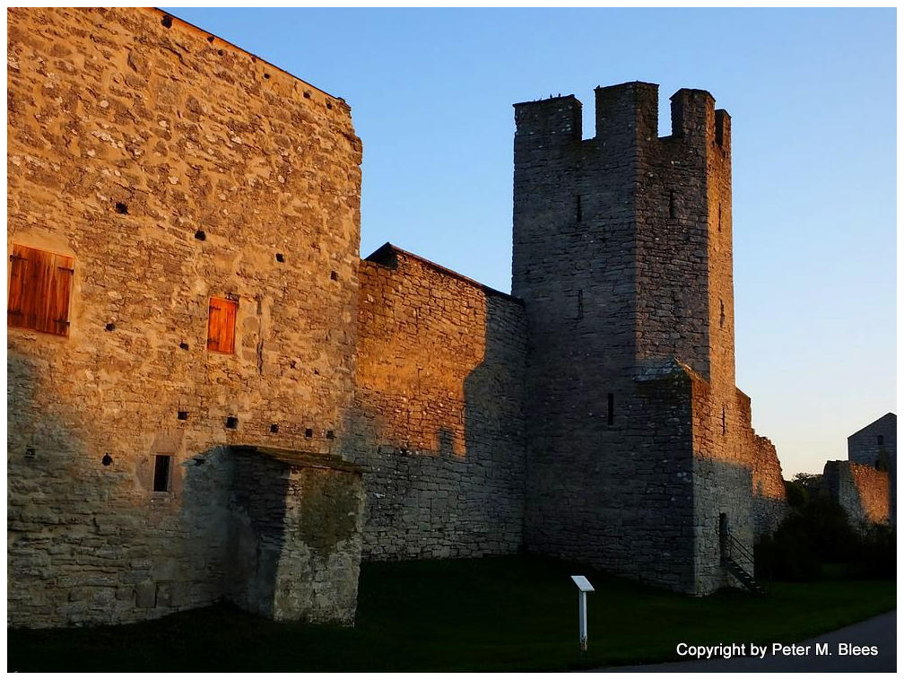 Früh am Tag setzt die Morgensonne Akzente auf der Stadtmauer, die sich im