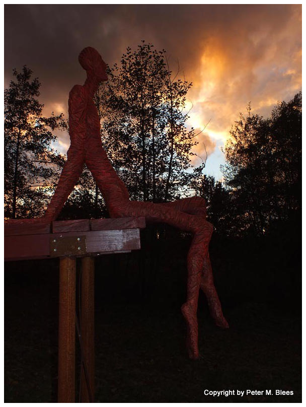 Ein bedrohlich wirkender Himmel wölbt sich über der Skulptur. Mit einem