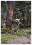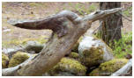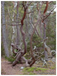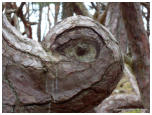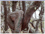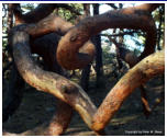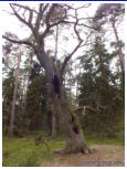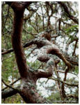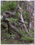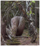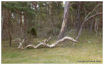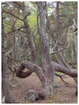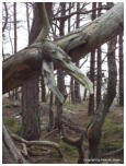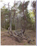 Vorschau TrolligesDie Insel Öland gabelt sich im Norden. Die östliche Halbinsel wird Trollwald genannt. In dem Naturschutzgebiet stehen neben einzelnen große Eichen hauptsächlich mächtige Kiefern, die weit hinauf von Kletterpflanzen bewachsen sind. Durch das teilweise dichte Unterholz bekommt der Wald etwas märchenhaftes (für Ängstliche vielleicht auch etwas Unheimliches), vermutlich deshalb wurde er früher in der deutschen Übersetzung Zauberwald genannt (”Trollskog” könnte man gutwillig als “Gnomwald” übersetzen). Neben historischen und prähistorischen Sehenswürdigkeiten im Gelände findet man an der Ostküste zur offenen See einen Streifen Kiefernwald, der durch den Seewind arg zerzaust und verkrüppelt wurde. Die meist mittelgroßen Bäume winden sich teilweise wie Schlangen. Sie wurden vom Wind zu den unmöglichsten Formen verbogen. Bei unserem letzten Besuch kam mir die Idee, merkwürdige Formen und Objekte im Bild festzuhalten. Ich versuchte mich in einen Ureinwohner zu versetzen, der geprägt von Geisterglauben und ähnlichem, einsam und gedankenverloren durch die Wildnis streift und in jeder merkwürdigen Form etwas übernatürliches sieht und vielleicht auch manchmal erschrickt. Sehen Sie selbst.In dieser Reihe gibt es zwei Fotos, die Sie nur durch klicken auf das große Foto der jeweiligen Seite zu sehen bekommen. Sie sind nicht in der Vorschau abgebildet.