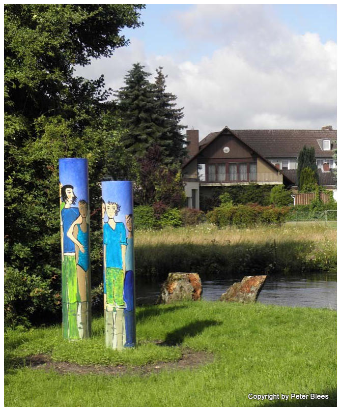 Das Objekt steht recht frei auf einem Wiesenstück mit Büschen in Flussnähe.